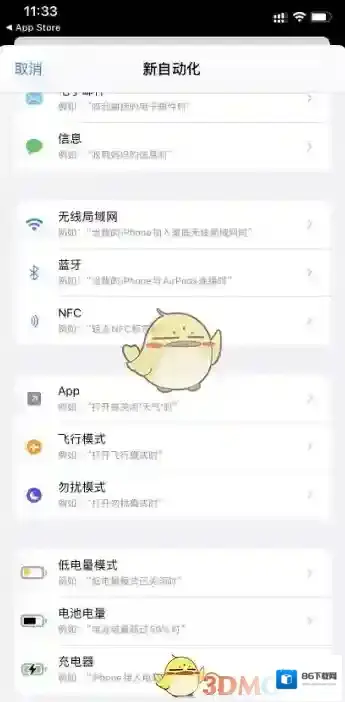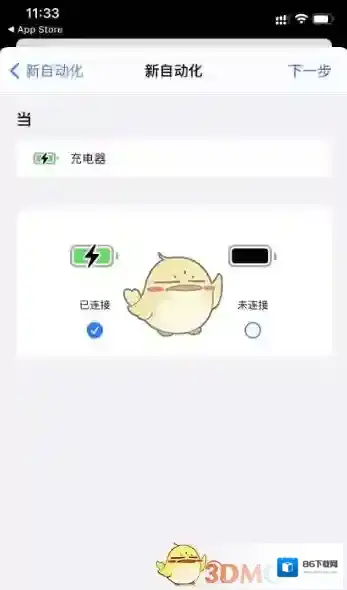 6、打开快捷指令,按照顺序点击自动化- 创建个人自动化- 充电器