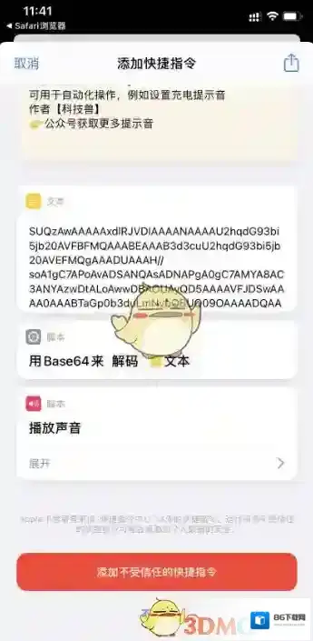 5、点击添加不受信任的快捷指令