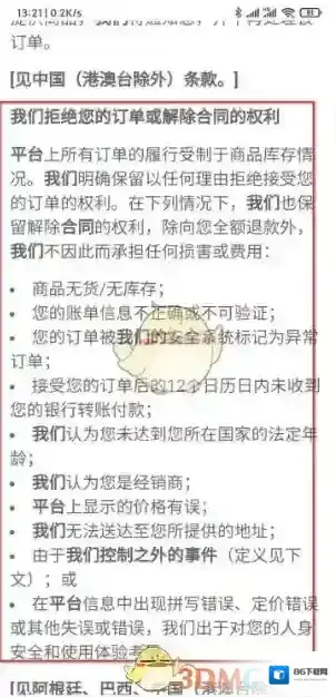 3、点击销售条款,可以看该商品的具体售后注意事项。