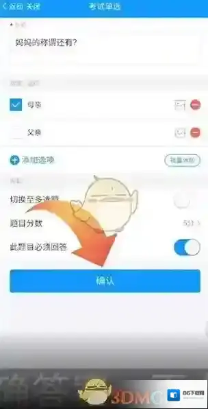 6、点击选项左边的方框,设置正确答案,再点击确认;