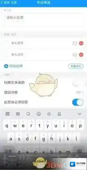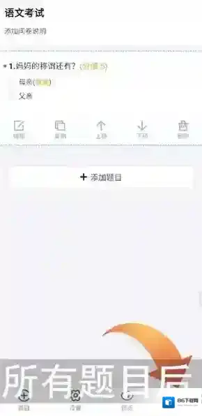 4、点击添加题目,再选择基础题型,如:考试单选;