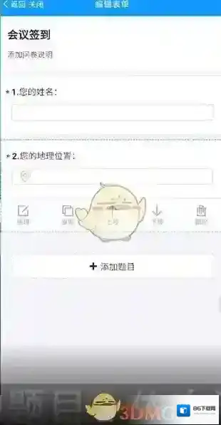 4、点击添加题目,依次添加签到选项,完成后再点击保存;