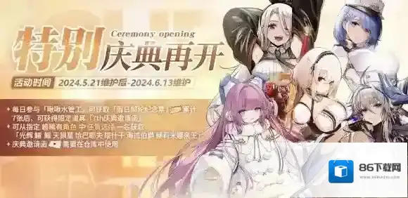 4.开启限时活动「特别庆典再开」,活动时间5月21日维护后~6月13日维护