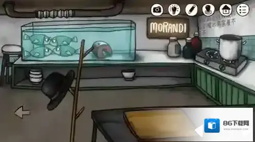 去商店使用钥匙,获得胶带,从后面的货架上拿取鱼饲料