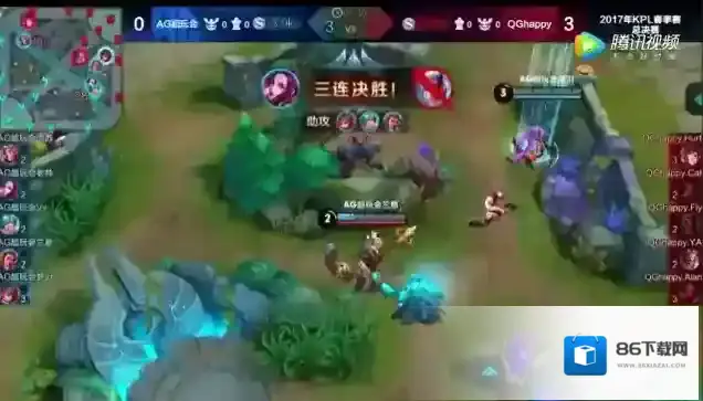 就拿总决赛上QGhappy对阵AG超玩会的最后一场比赛来说,AG超玩会在拿下李元芳和芈月之后前期非常强势拿下三杀。