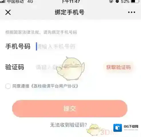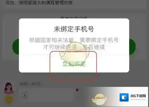 4、进入直播课内,开课还需要绑定手机号,点击立即绑定按钮。并输入手机号码获取验证码进行绑定。