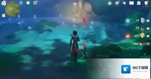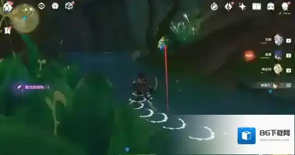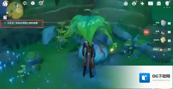 然后在傍边有个藤蔓石,如果没有升起来可以使用草元素打一下。下面有个幽闭花,我们过去演奏