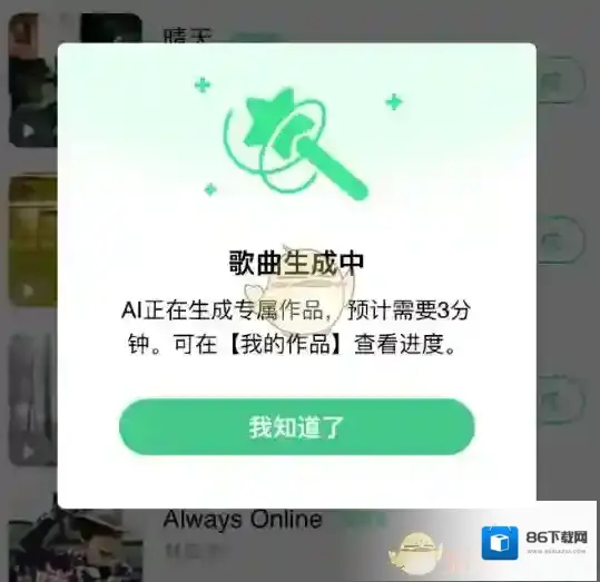 4、根据步骤引导完成音色生成,选择一首歌曲,点击生成。