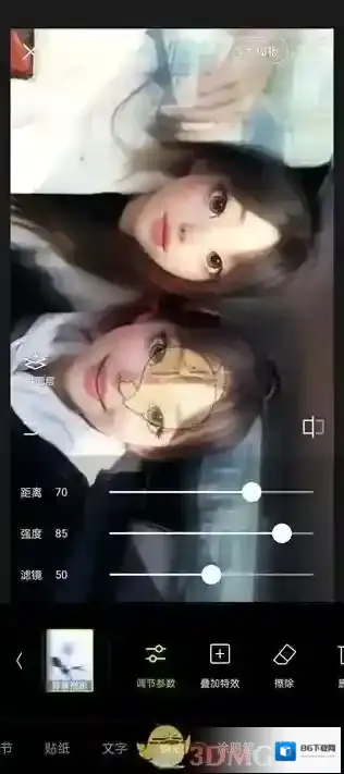 6、最后点击过后我们根据需求来调整距离、强度、滤镜即可了。