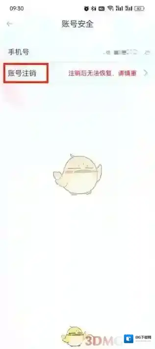 4、之后进入到账号安全的页面中有手机号和账号注销两个功能,在这里点击账号注销;