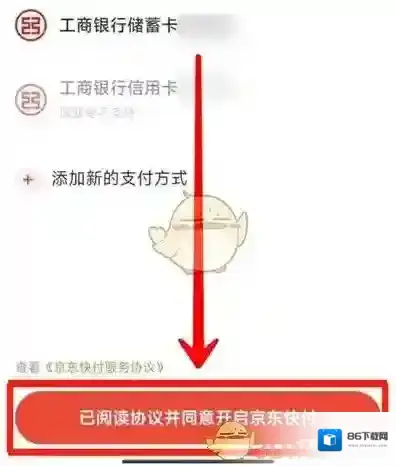 5、最后在进入的页面里设置扣款顺序,并在底部点击“已阅读协议并同意开启京东快付”即可。