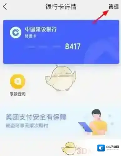 5、进入银行卡管理界面,点击解除绑定就可以了。