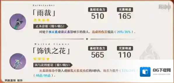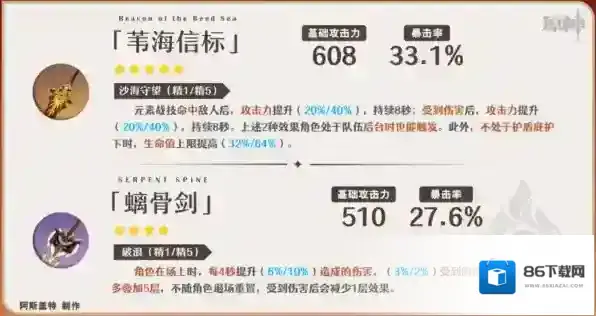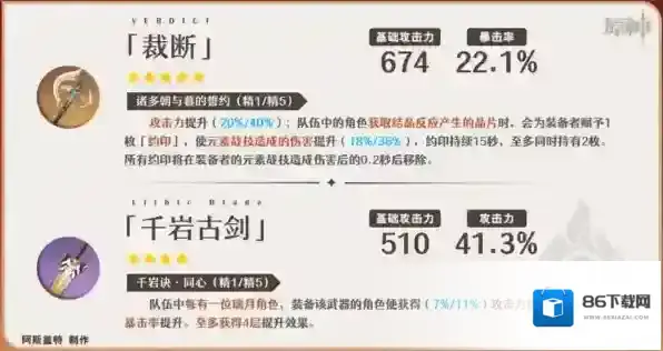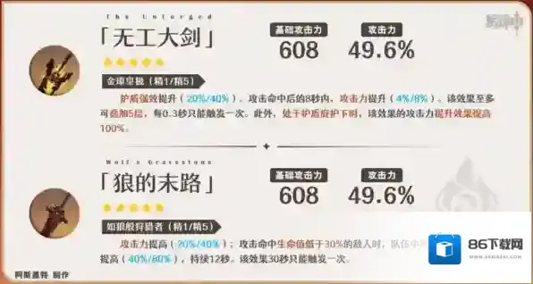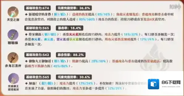 ①这两把攻击类武器对嘉明也有不错的提升,但如果搭配班尼特、闲云等能够提高基础倍率区间的辅助时,高额的攻击加成的稀释程度将会加深。