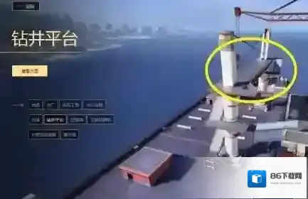 大海辽阔一望无际,钻台霸气巍然屹立。钻井平台是全图唯一的远离陆地的地域,钻井平台相当大,能够满足两到三人的需求。平台内部结构多层,听声辩位真的很难。上图黄圈内位置为钻台最高点,可观察船上的一切敌方动向,此处拥有物资,适合落脚,狙击蹲点也很方便。此外想要离开钻台只有载具和游泳。想到什么没有?没错,在钻台中央位置的水域有刷新的载具,蹲载具等人也是很好的选择。