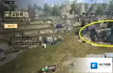 烈日当空照大地,远观尽是汗淋漓。采石工地地形呈梯状层次分布,物资主要集中在内部的低处,房屋机构简易,很符合现实,存在很多机器掩体,不适合作为物资搜集区。上图黄圈内三个采石运输房,内部可观察四方,掩体全方位,窗户用于射击,躲进通道易守难攻,当然,要多注意房子上方高地的情况,注意躲避手雷轰炸即可。