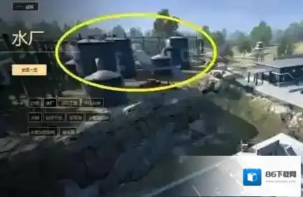 放眼望去布局合理,高大宽敞排列有序。水厂是这几个地点中,面积最大,物资最丰富的地域。这片地域的地形地貌复杂,障碍物也是最为奇形怪状的,各种厂房、管子、集装箱和大池子。由于地图较大,固定的一个蹲守狙击点当然是不能掌控全厂的,不过小杨推荐的这个地方绝对是最骚气的。上图黄圈内的储水桶位置,通过爬水管的方法可以登顶,此处地势较高,视野开阔,趴下敌方看不到,不过爬水管的时间还是比较长的,要小心周围的敌人!