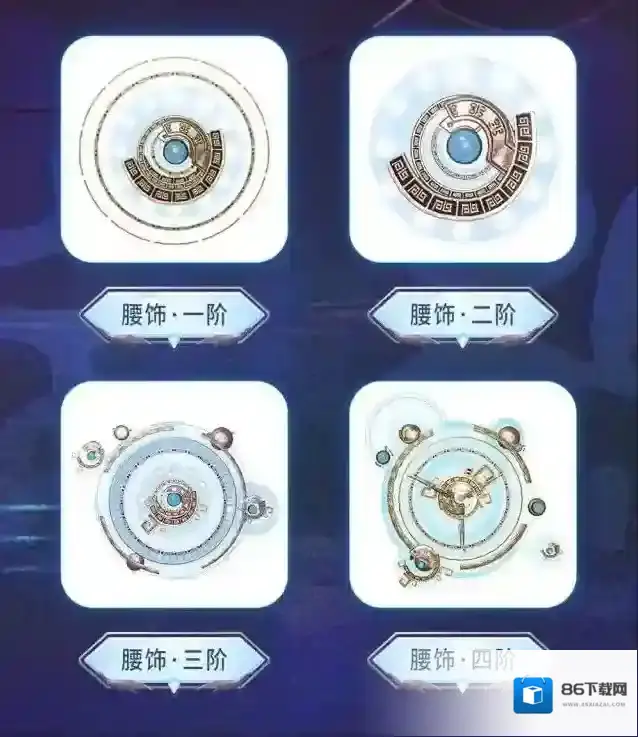 ○ 腰饰:化偃-惊偃-偃火霓云-偃域梦华共四阶外观展示(开发中效果展示,不代表最终品质)