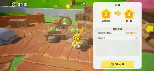 点击仓库,每种果实出售后都能换取一定数量的农场币。积累了足够的经验和农场币之后,农场就可以全面升级啦!这里升级主要分为农场小屋升级和蔬菜摊升级两种。农场小屋升级可以解锁新作物,并提升待开垦土地数量及蔬菜摊的等级上限。蔬菜摊升级可以提高农田产物的售卖价格。小tips:在出售农作物时,最好不要一次性全部售卖,可以只兑换足够农场升级和买种子的农场币,等后期蔬菜摊升级之后再去卖出,会带来更高的收益哦~