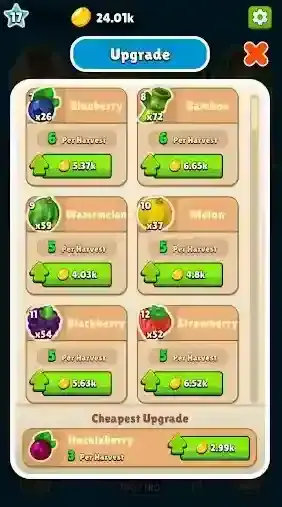 2、提高角色技能,确保你的作物始终生长茂盛,帮助你更快地收集水果和蔬菜。解锁创新建筑,制作独特食谱,提升你的农场。