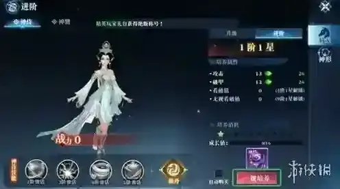为神侍进阶,不仅可以提升其攻击、破甲等数值,还能激活他的技能。