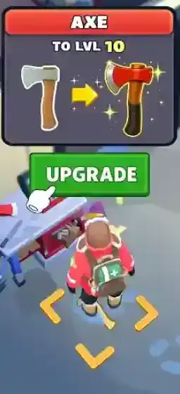4、有了足够的资源后,我们可以去升级自己的工具,例如斧头,可以帮助你去扫除更多障碍。