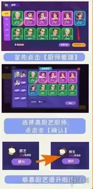 2、在厨师列表中挑选需要提升等级的厨师对象。