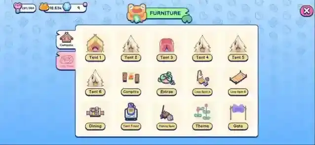 你将在游戏里帮助小青蛙管理这个露营地,通过放置不同的设施来增加露营地的人气,通过吸引更多的顾客来解锁不同的装饰,发挥你的想象力来打扮你的露营地,不断经营管理让你的露营变成世界上最美最豪华的露营地。
