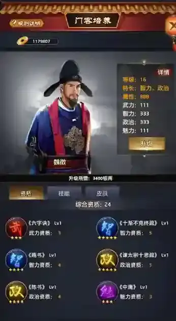 6、门客皮肤穿戴,这个对于普通玩家还是比较困难的。但是其增加的属性也是不可小瞧的。这些培养门客的方式都是比较简单的,也不需要过多的投入!