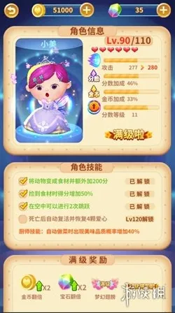 在《大耳朵图图美食酷跑》中,除了图图一家外,还加入了小美、壮壮与刷子等我们熟悉的角色,总共有6个角色可供选择,每个角色的属性与技能各不相同,偷偷告诉大家,想要刷分,就选小美。看,她的介绍里就写着刷分吃货呢。