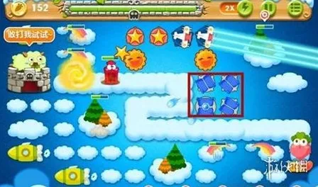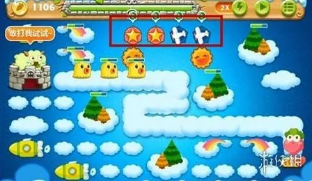 2、打掉太阳旁边的道具,可获得2个炸弹星和2只玩具飞机,这样前期基本就没有太大压力了。