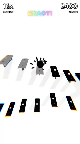 3、不断的跟着音乐节奏跳跃到上面的台阶上,直到掉入下面就戴代表游戏结束。