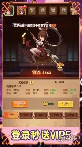 核心功能为武将养成,玩家可通过招募、培养、觉醒等多种方式提升武将实力,每位武将都有独特的技能和属性,需根据武将特性合理搭配阵容,适配不同战斗场景,打造专属强力队伍。