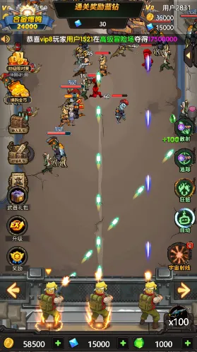 2、虽然是射击闯关游戏,但实际上操作非常的轻松,而且累了还可以直接开启自动模式,挂机升级!