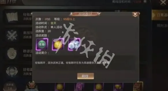 完成经验跑环任务,可获得大量经验奖励,每天共有20个。