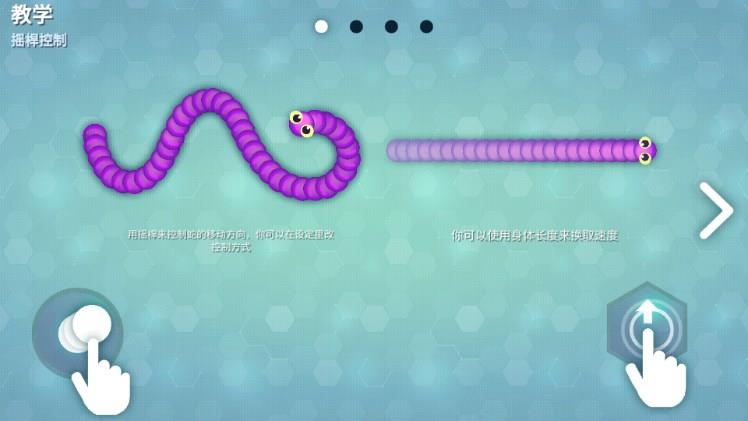 1、控制摇杆走位你的小蛇,吃掉地图上彩色的小圆点,或者攻击其他蛇蛇,要有技巧性的攻击,告诉你一个小秘密,合理使用加速按钮把其他蛇蛇围堵起来,被你围堵起来的蛇蛇无路可走撞上你的蛇蛇死掉后会掉出一堆食物哦~~~吃掉小圆点自己就会变长喔。