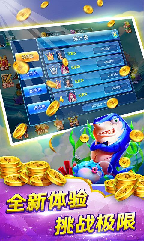 全新的捕鱼的挑战,精致顶级的捕鱼游戏的画面设计,一起进行捕鱼的挑战任务,非常多的奖励带给玩家。