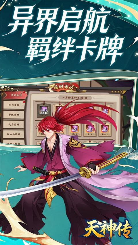 天神传(0.05折式神召唤送千抽)是一款策略放置卡牌福利手游,该版本玩家可以享受0.05折充值福利外,创角即送1000代金、SSR‘死神’、8888勾玉货币、橙色顶级装备礼包,每日签到、完成任务还有100召唤券等资源!