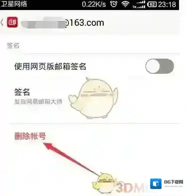 5、之后,进入到指定邮箱帐号页面,点击页面中的“删除帐号”。
