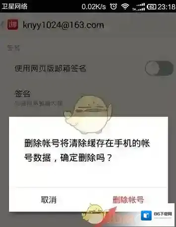 6、最后,在确认删除提示中点击“删除帐号”即可完成邮箱帐号的删除。
