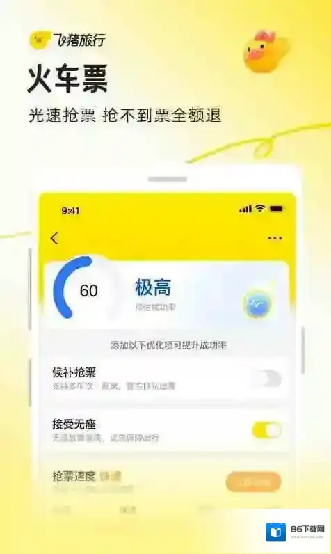 2.在这个界面,您可以登录后添加行程,飞猪升级后去掉了自动选座的功能哦,不过还是不影响您订购车票的。
