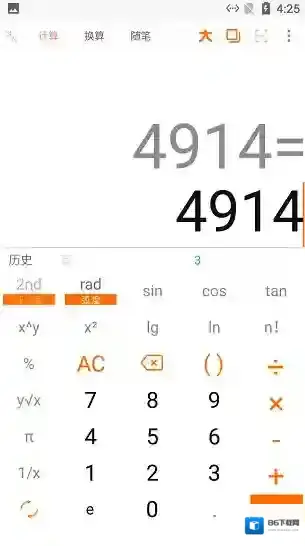 2.在这款软件中你还可以进行三角函数计算,对数,指数,开方等丰富的计算方式选择。