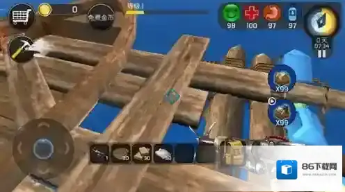1、首先收集基础物资,漂浮的木板和塑料桶是初期关键材料。优先制作钓竿获取食物,保持饱食度。