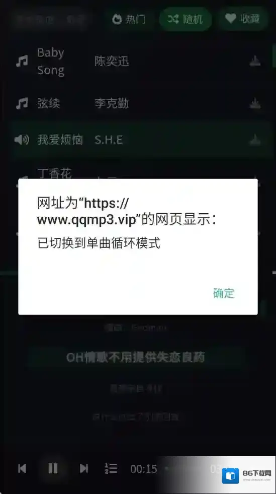 4、点击歌曲后面的收藏按钮可以收藏音乐。