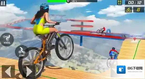 2、竞速与休闲结合:既可以参与计时竞速挑战,比拼骑行速度与技巧,也能选择休闲模式慢悠悠欣赏沿途风景,满足不同玩家的需求,兼顾刺激与惬意。