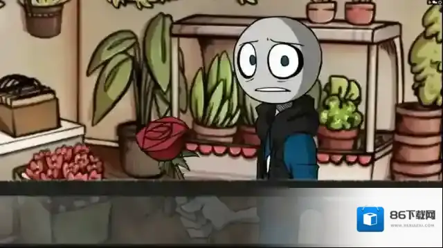 1、这是游戏的初始界面,画面中的角色是Peter,呈现了他手持玫瑰的形象,界面有【开始】按钮,属于开始阶段的场景,用于引导玩家开启剧情互动内容。