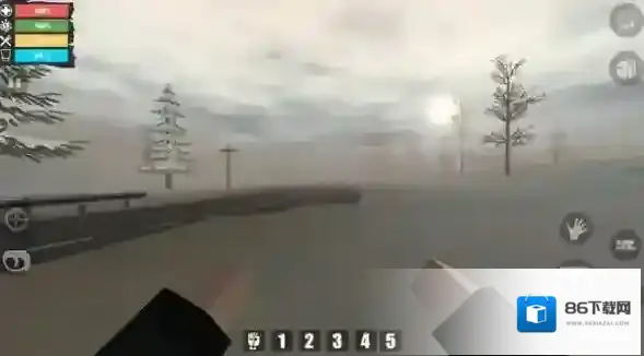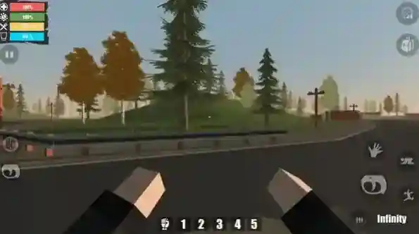 3、以开放世界探索、资源收集、生存状态管理为核心玩法,场景(如道路、森林)支持自由移动,状态条设计强制玩家关注生存需求(如寻找食物、水源)。