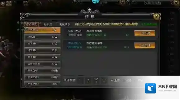 3、游戏内设有挂机区域,玩家可以选择前往这些区域进行挂机。