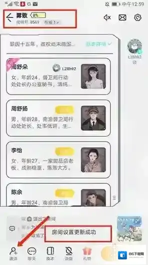 4、返回房间主界面后,系统将显示设置已生效提示,锁型标识消失表示房间转为公开状态,此时可通过左下角邀请功能召集玩家加入。