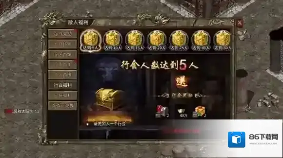 4、加入行会,根据行会累计人数还可领取福利礼包。