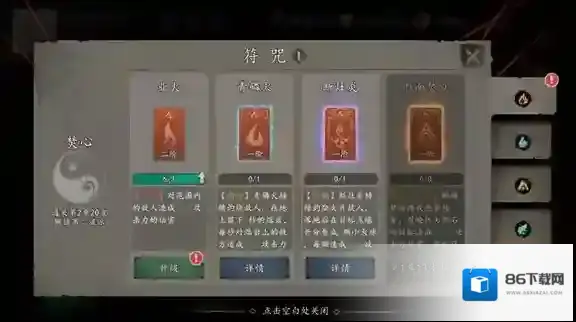 8、点击符咒可以对使用的符咒进行升级。